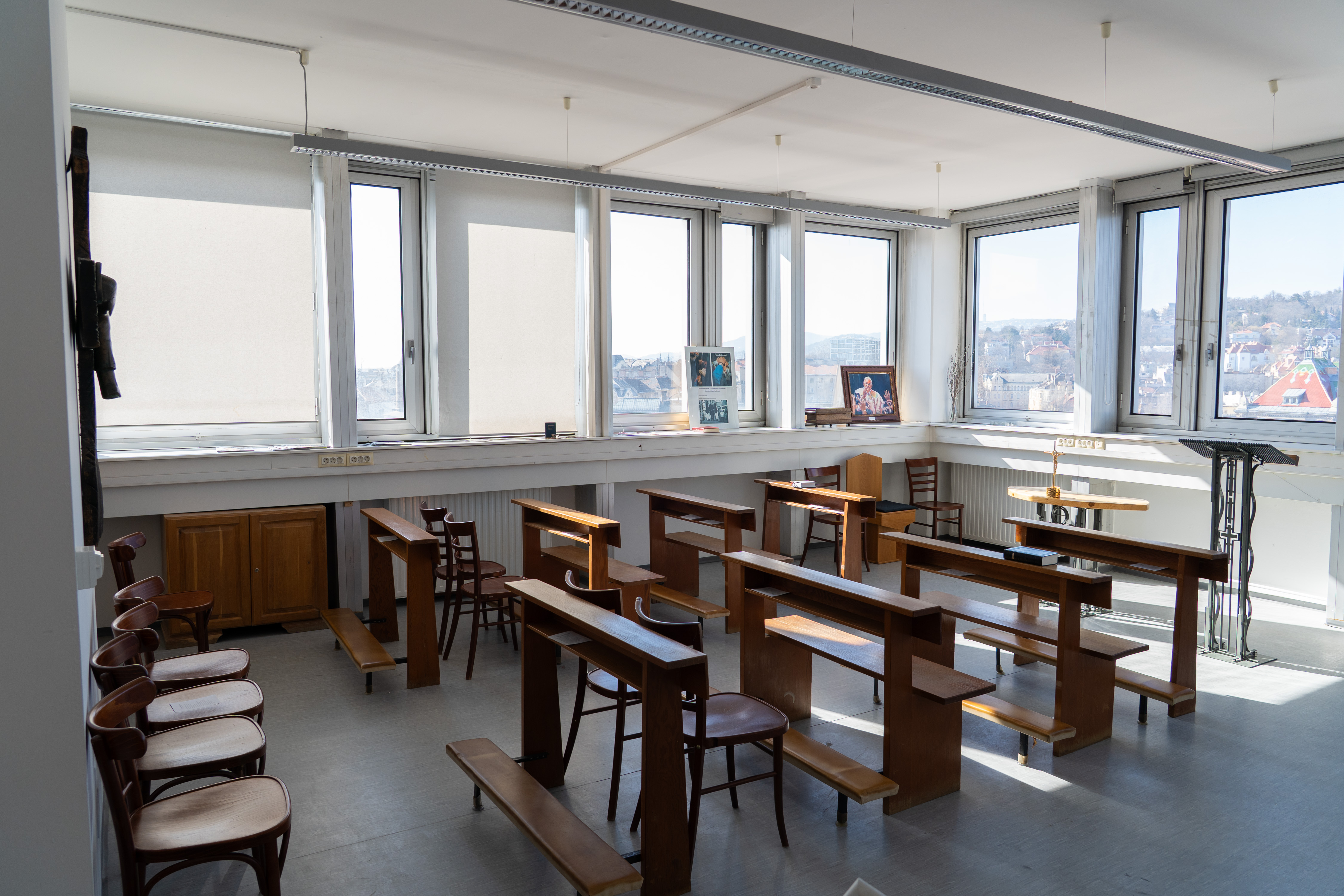 A Iohanneum épületének 5. emeletén található Kápolna a belső hitéleti igényeket szolgálja, lehetőséget biztosítva kisebb létszámú, bensőséges együttlétekre.