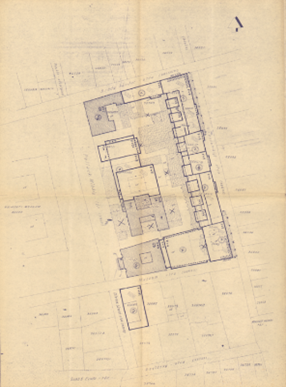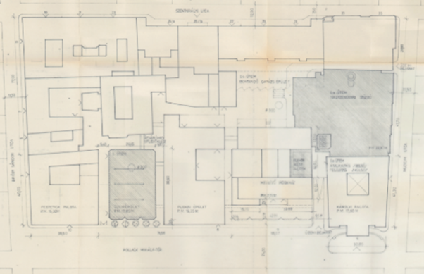 A Pollack Mihály téri épületek átépítési tervezett helyszínrajza az 1970-es évekből[8]