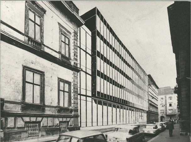 A Nánási Sándor által 1966-ban tervezett hangversenyterem Múzeum utcai homlokzata