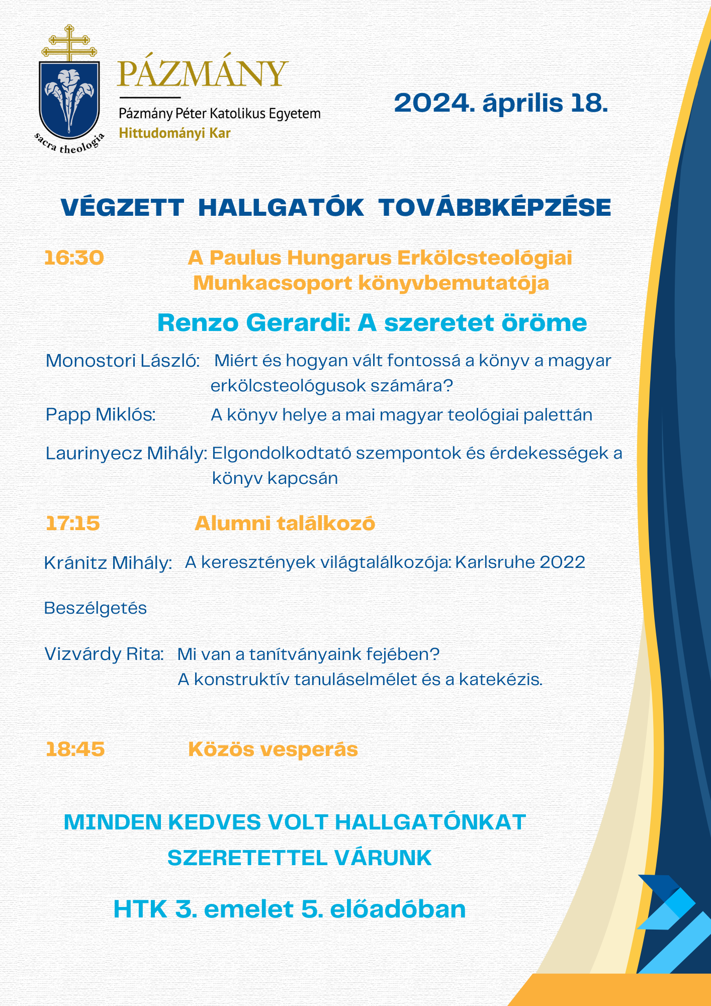 Helyszín: Hittudományi Kar I. em.