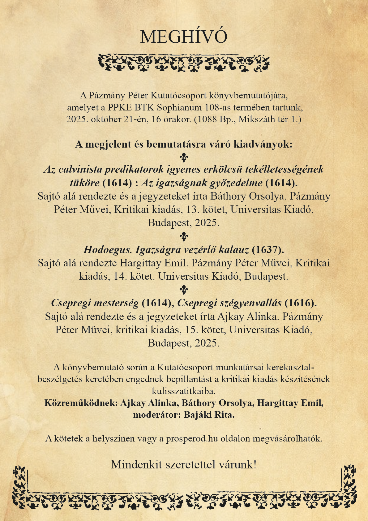 Pázmány Péter Kutatócsoport hármas könyvbemutatója 2025. okt. 21. 16:00 Facebook megosztás Küldés e-mailben URL vágólapra másolása