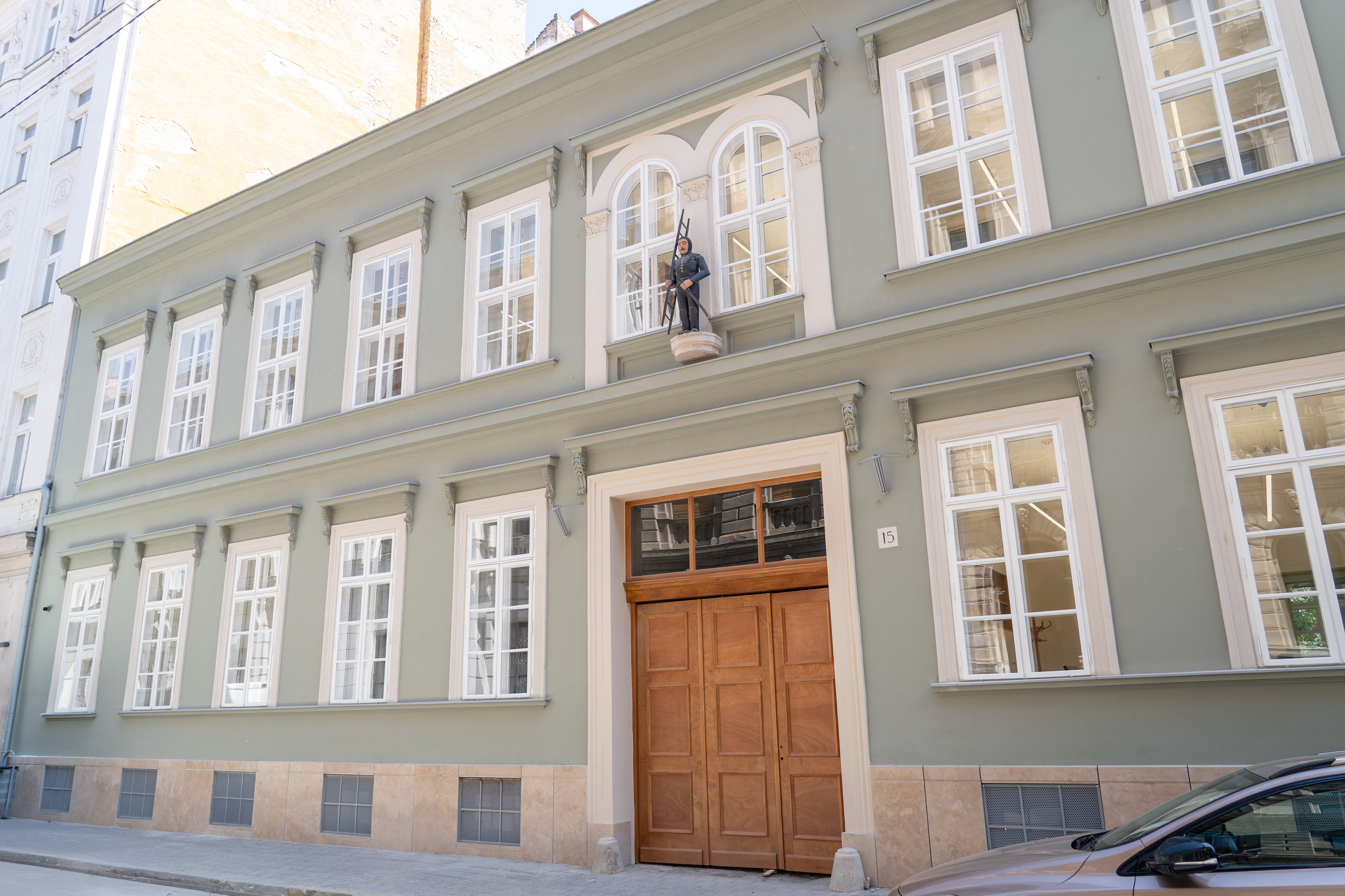 A Kéményseprőház a Palotanegyed és Budapest egyik legkülönlegesebb épülete, amely számos emléket őriz. Egyetemünk az ingatlan megvásárlásától kezdődően kiemelt feladatként tekintett az épület korhű felújítására és a korszerű, intézményi igényekhez illeszkedő funkciókkal való gazdagítására. Ennek a gondolatnak a szem előtt tartásával a telken található, műemléki értéket nem képviselő, épületszárnyakat és tárolókat elbontottuk, a műemléki épületet pedig korhű módon, ugyanakkor a jövőbeni felhasználási igényekhez igazodva alakítottuk át. Az épület az Egyetem központi szervezeti egységei – mintegy 70 fő irodai dolgozó – számára biztosít majd megfelelő munkakörnyezetet.